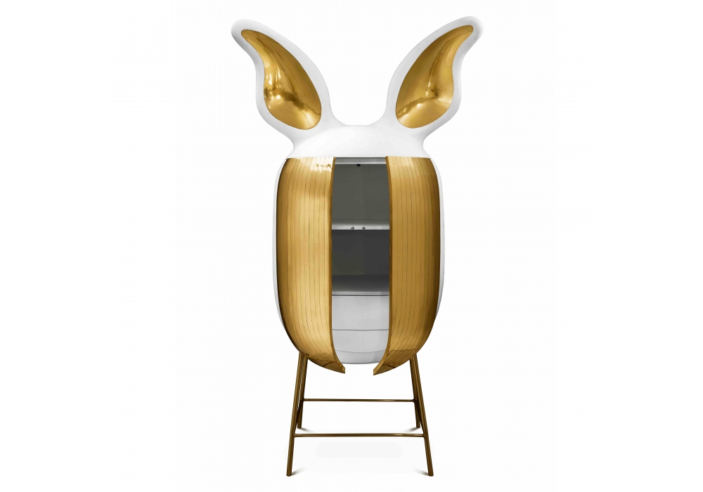 Mimi conçu par Matteo Cibic pour Scarlet Splendour est un meuble de rangement en contreplaqué et laiton.