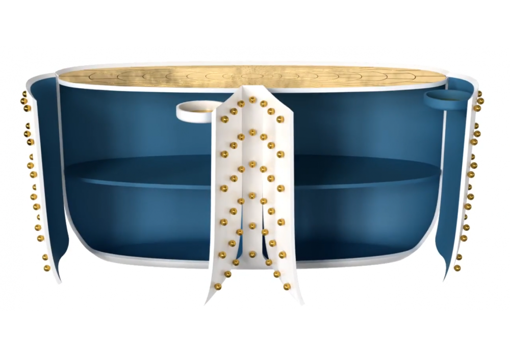 Oasis conçu par Richard Hutten pour Scarlet Splendour est un buffet en MDF, contreplaqué et laiton.
