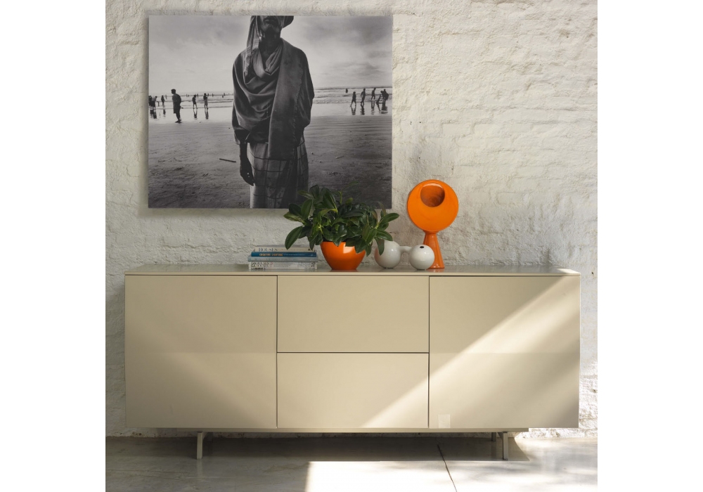 Amsterdam conçu par Silvia & Maurizio Varsi pour Bontempi est un buffet en bois disponible en différentes finitions. Le buffet est également disponible avec un compartiment ouvert sur demande.