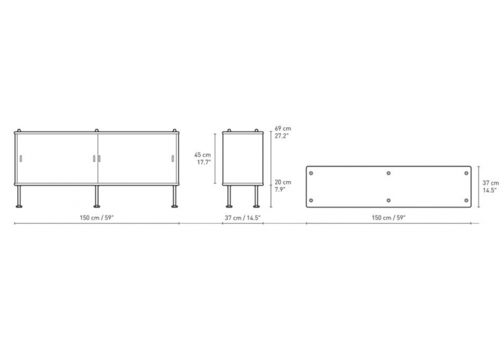BM0253-5 conçu par Børge Mogensen pour Carl Hansen & Son est un buffet avec structure en acier enduit de poudre, étagère/récipient et portes en placage chêne ou noyer en différentes finitions.
