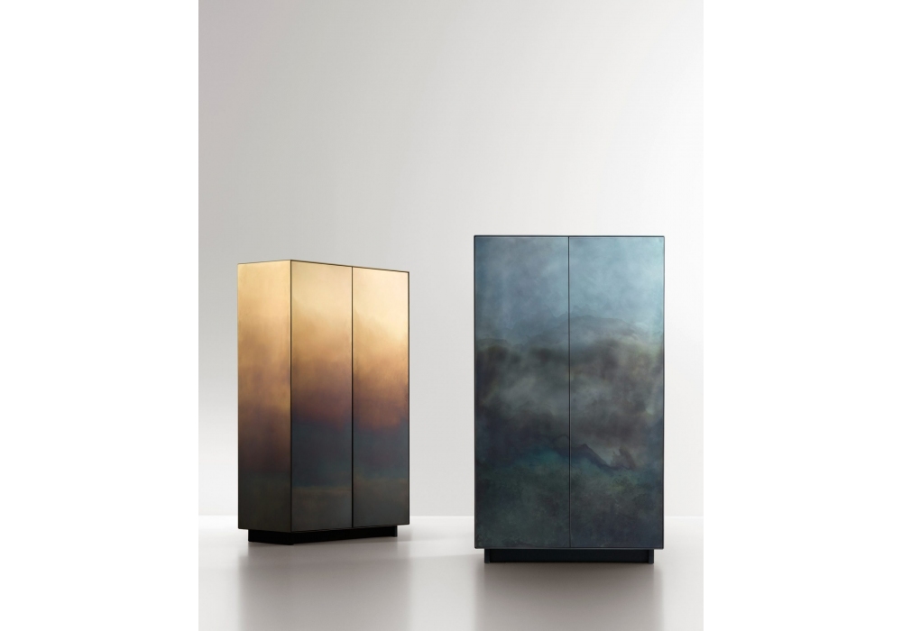 Marea conçu par Zanellato / Bortotto pour DeCastelli est un meuble de rangement recouvert de métal et structure interne en chêne titane. Portes et tiroirs avec ouverture push-pull. Disponible en différentes finitions.