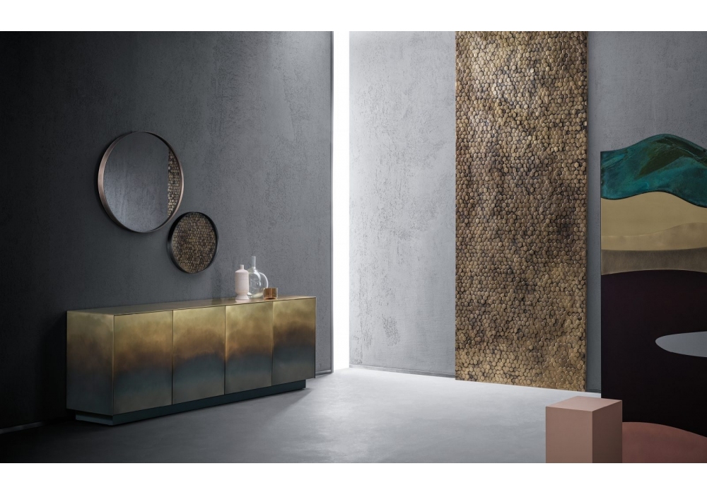 Marea conçu par Zanellato / Bortotto pour DeCastelli est un buffet recouvert de métal et structure interne en chêne titane. Portes et tiroirs avec ouverture push-pull. Disponible en différentes finitions et dimensions.