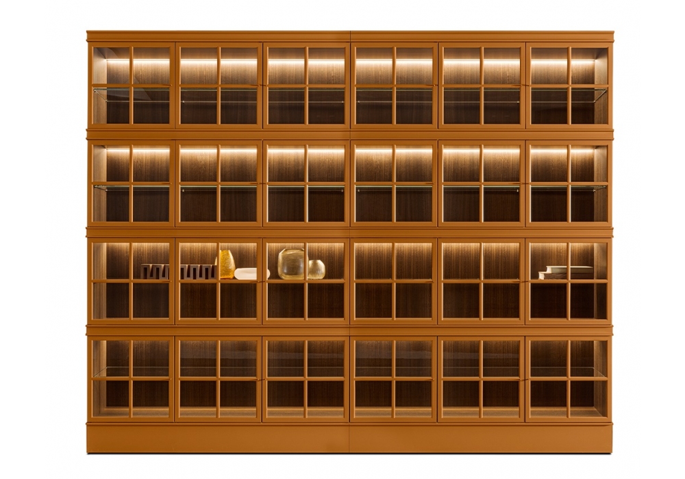 Piroscafo conçue par Aldo Rossi et Luca Meda pour Molteni&C est une réédition pour son 30e anniversaire, il présente une nouvelle façade laquée dans une couleur chaude avec des intérieurs en eucalyptus re-propose une pièce classique dans une version contemporaine sans trahir ses origines comme un meuble rigoureux mais fonctionnel.