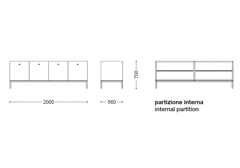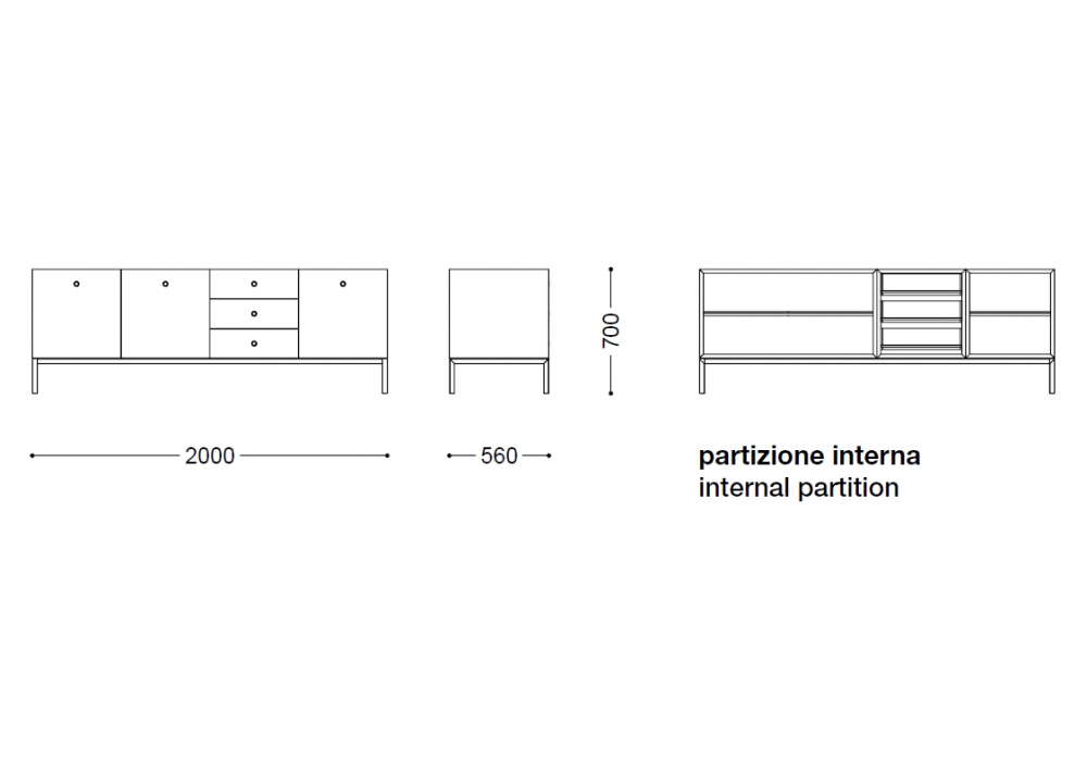 Offshore conçu par Piero Lissoni pour Porro est un buffet en bois de frêne. les intérieurs sont en érable naturel et les tiroirs sont en contreplaqué de bouleau. Le buffet est disponible en 4 types: 2 hauts et 2 bas.