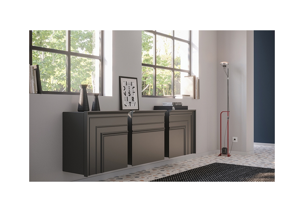 Gessolina conçu par Bellavista & Piccini pour Minotti Italia est un conteneur suspendu en bois aggloméré avec porte sculpturale, étagère interne réglable en hauteur. Disponible en différentes finitions, modèles et configurations.