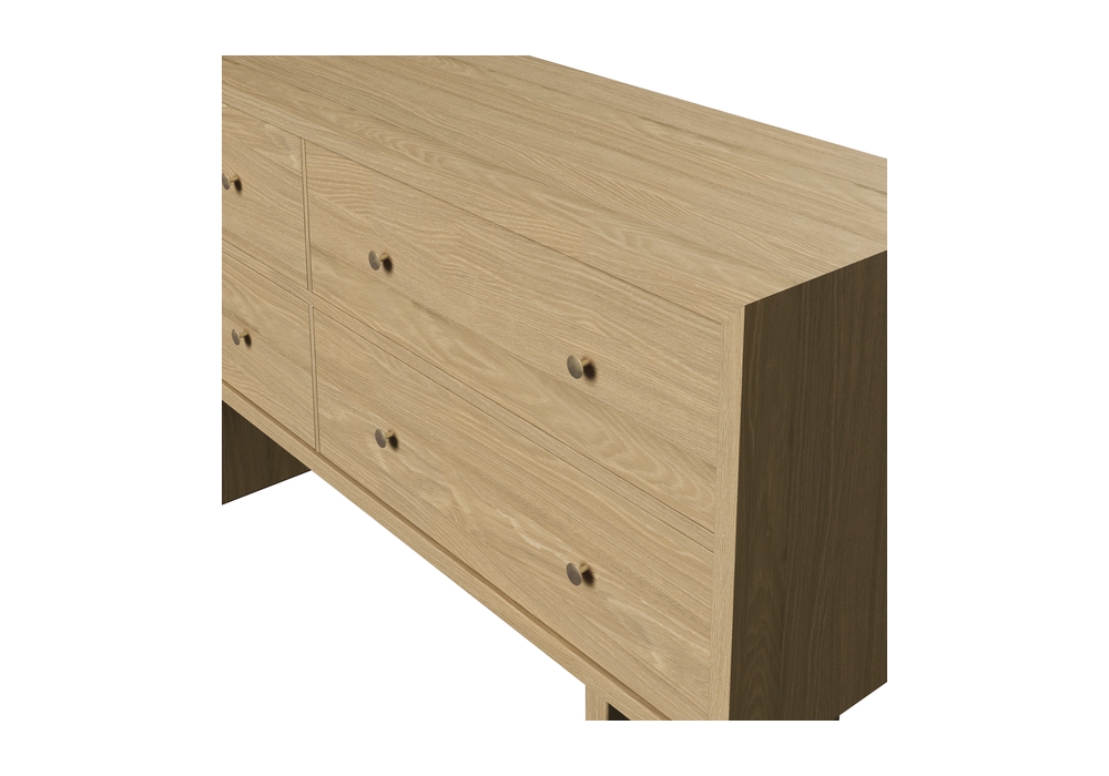 Private conçu par Space Copenhagen pour Gubi est un buffet en chêne plaqué. Il est disponible en couleur marron/noir ou clair.