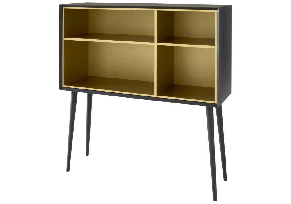 Kermes conçu par Evangelos Vasileiou pour Ligne Roset est un buffet ouvert très élégant qui apporte une touche très contemporaine au meilleur du style des années 50 et 70. MDF satiné teinté noir avec intérieur laqué rouge ou bleu lavande. Pieds en frêne massif teinté noir satiné, vissés sur une plaque métallique. Les étagères internes sont fixes.