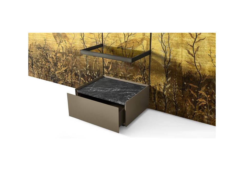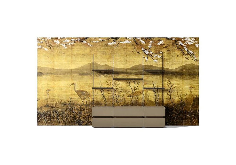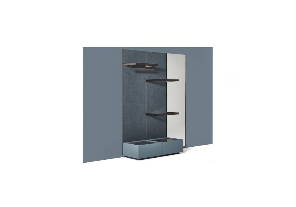 Ghost Wall conçu par Mikal Harrsen pour Cassina est un système de jour composé d'un dossier recouvert de tissu et de panneaux de verre ou de bois. Les conteneurs sont composés d'un tiroir empilable et peuvent être complétés par un plateau en verre ou en marbre pouvant être commandé séparément, il est possible de varier les compositions des tiroirs dans le temps.