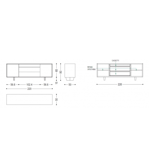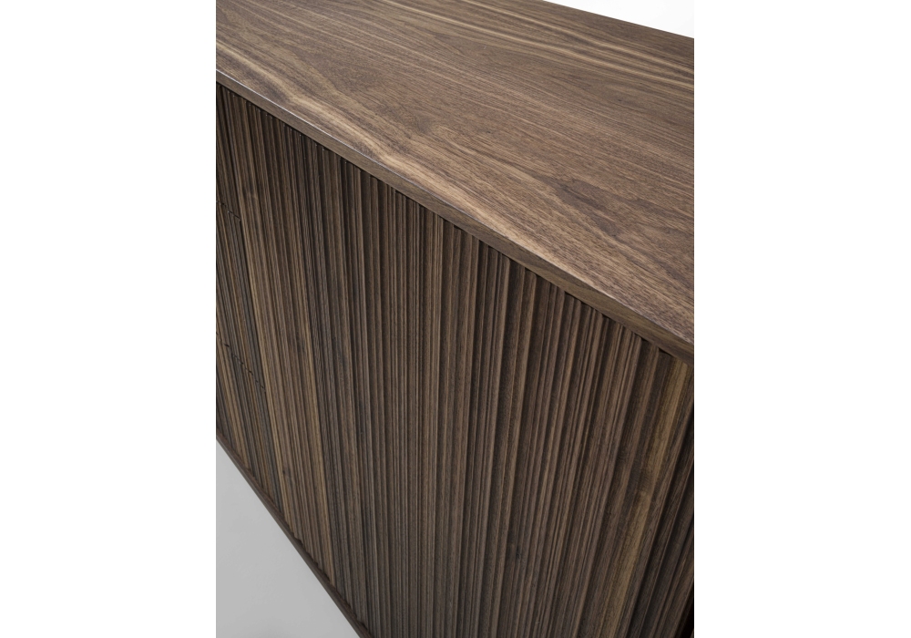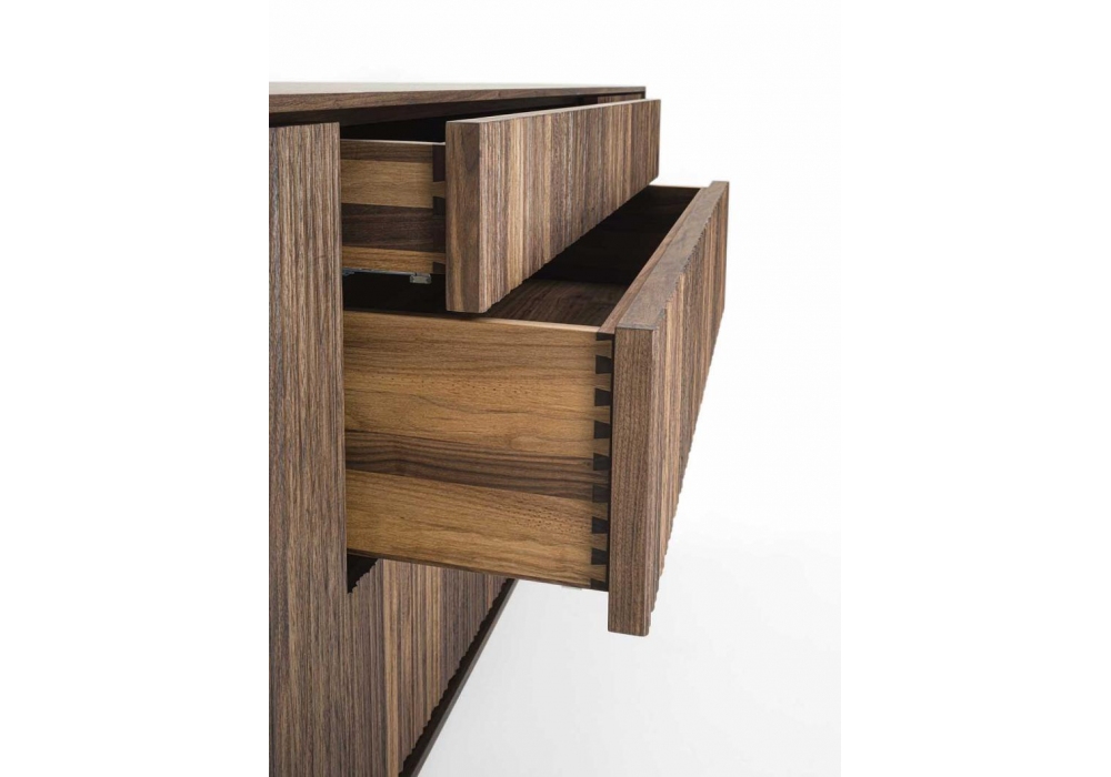 Vela Sideboard conçu par Riva 1920 est un buffet en bois massif et latté, caractérisé par un traitement vertical particulier des portes et des façades de tiroirs, Fresart, qui crée un effet géométrique moderne et dynamique. Tiroirs assemblés en queue d'aronde. Également disponible avec des façades lisses.