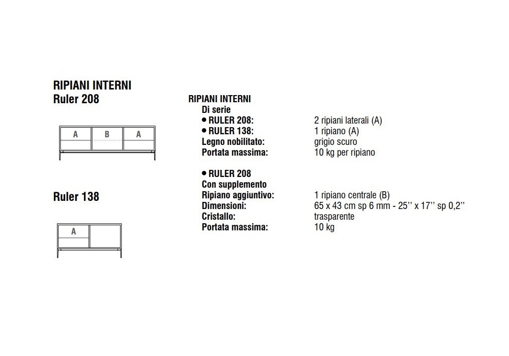 Ruler conçu et produit par Bonaldo est un buffet avec structure externe en bois laqué mat, portes en aluminium peint et base en métal, disponible en deux tailles et en deux combinaisons de couleurs : bronze ou plomb. Le buffet est réalisé avec une base plinthe ou avec des pieds. Les étagères internes sont en bois mélaminé (sur demande, également disponible en verre transparent).