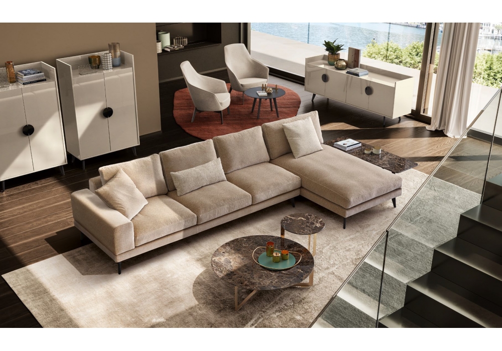 Ofelia conçu par Carlo Bimbi pour Dema est un buffet avec structure et étagères en fibre de bois MDF, poignée en acier avec finition galvanique or, nickel noir et chrome. Pieds en acier laqué ou bois de frêne. Disponible en différentes finitions et modèles.