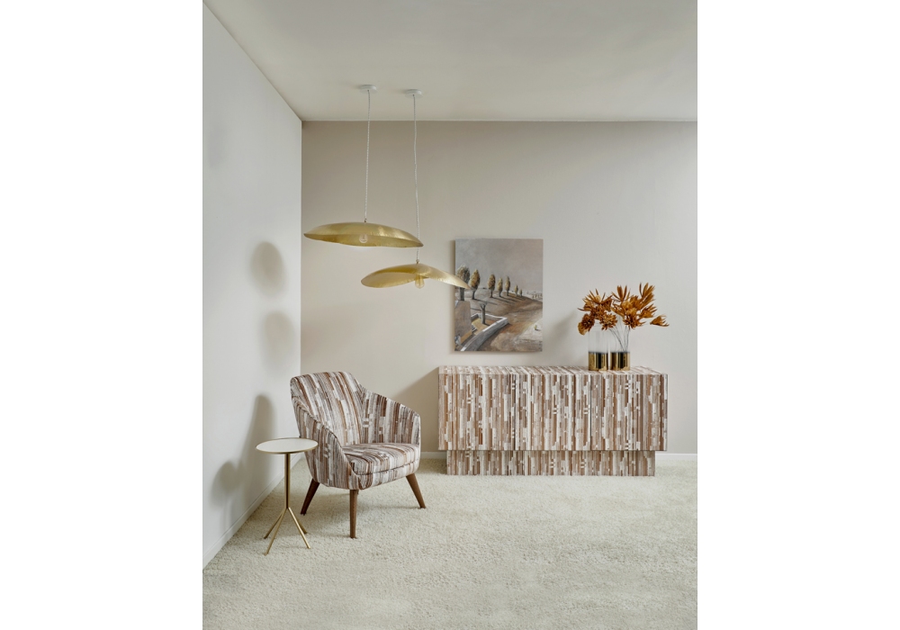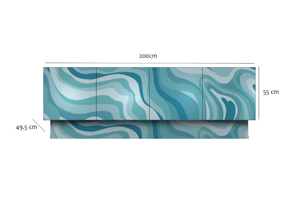 Sharp conçu par Studio Debonademeo pour Momenti est un buffet à 3 ou 4 portes réalisé avec structure en mdf, avec intérieur laqué mat. Structure avec bord incliné à 45°. Finition extérieure et portes : laque mate, mortier de laque mate et mortier moulé, recouvert de tissu de fibre de verre imprimé, laque brillante à impression directe avec finition extra-brillante. Finition protectrice : mat non toxique et brillant extra brillant. Base en MDF dans la même finition que la structure.