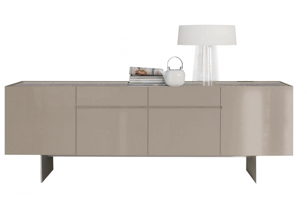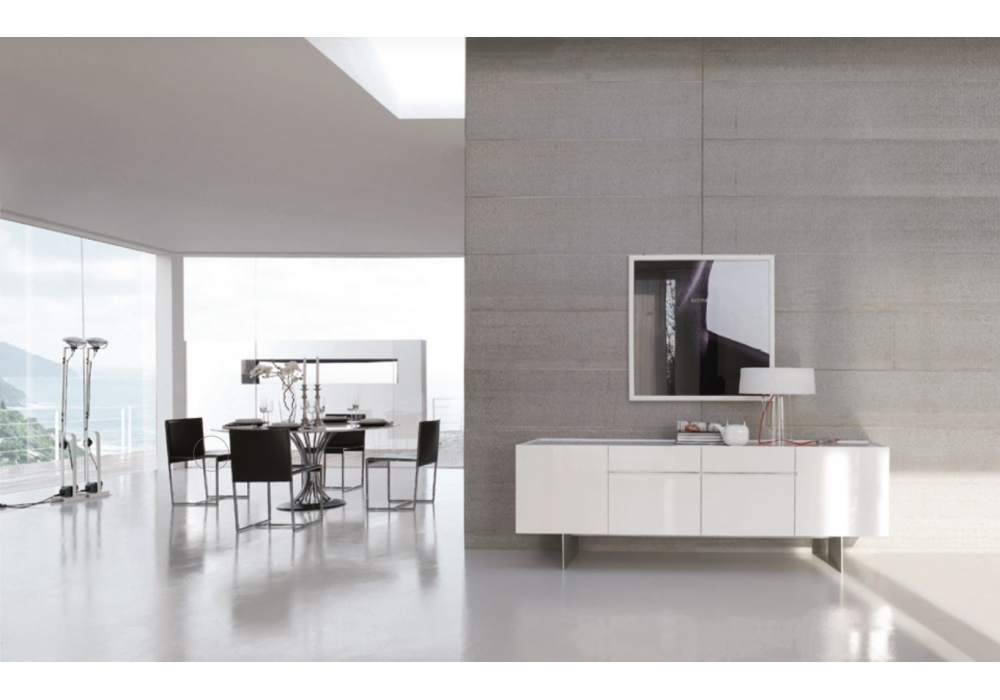 Kubit conçu par Giuseppe Bavuso pour Alivar est un buffet en MDF laqué avec quatre tiroirs et deux portes latérales. Plateau en marbre ou en céramique couplé à un verre transparent extra clair. Base en aluminium brossé ou peint.