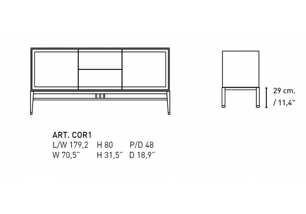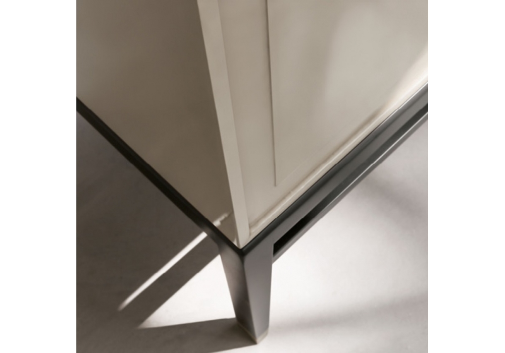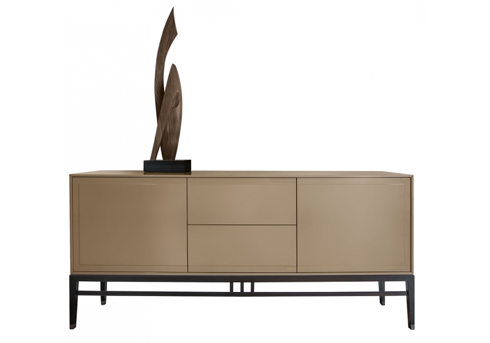 Oriental 179 conçu par Giuseppe Bavuso pour Alivar est un buffet avec deux portes et deux tiroirs. Finition extérieure en MDF laqué, finition intérieure en palissandre. Les tiroirs ont une ouverture push-pull et coulissent sur des guides entièrement extractibles. Piètement en frêne massif peint avec embouts en nickel noir. Étagères internes.