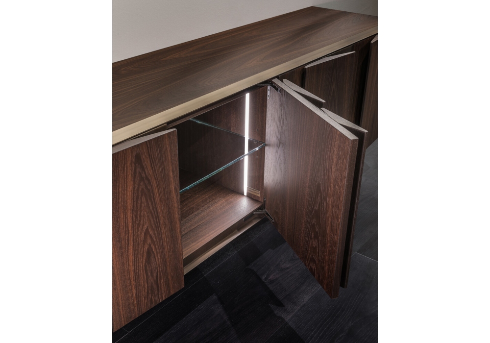 Fractal conçu par Elena Pancaldi pour Emmemobili est un buffet en contreplaqué plaqué en différentes finitions, dans la version tout bois ou enrichi d'inserts en laiton. Disponible en différentes tailles.