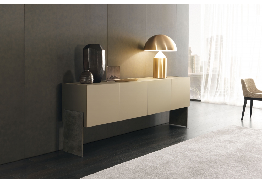 Aipim conçu par Arthur Casas pour MisuraEmme est un buffet caractérisé par un système d'ouverture frontale rabattable qui permet une ouverture complète du compartiment de confinement, rendant l'accès fonctionnel. La base est constituée de deux supports en fer naturel ancrés aux épaules. La structure générale en MDF. L'extérieur est créé en associant des miroirs gravés à l'acide à des supports en chêne noir tranché ou en orme gris. Structure interne dans la même finition que le plateau.