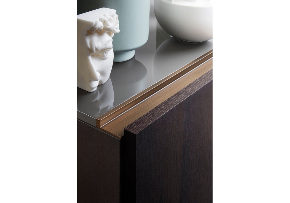 Florens conçu par Gabriele et Oscar Buratti pour Lema est un buffet en bois avec portes battantes. Côtés et dessus personnalisables dans différentes finitions et matériaux, il peut être complété par une étagère en bois à compartiments ouverts enrichie de tiroirs et de plateaux essentiellement inspirés de la tradition ébénisterie.