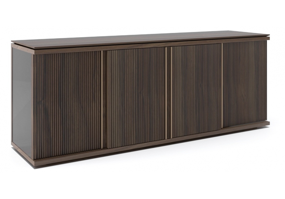 Erica conçu par Serra By Milia pour Escooh est un buffet avec structure en bois massif, côtés latéraux en cristal et étagères internes en marbre ou bois. Le plateau est en noyer ou en marbre. Disponible dans la version avec portes battantes ou coulissantes.
