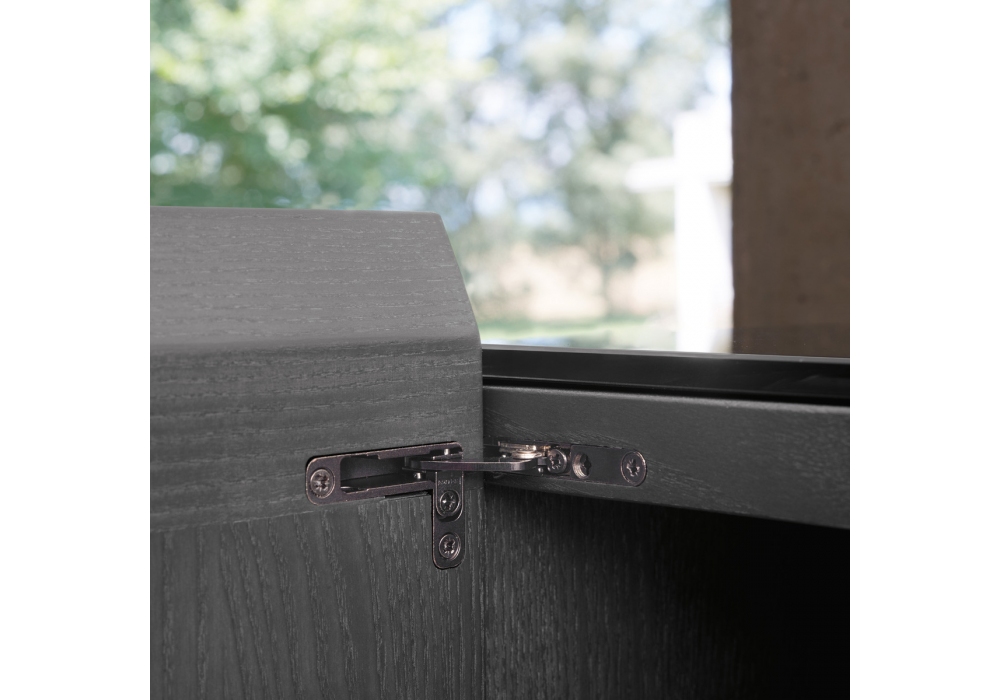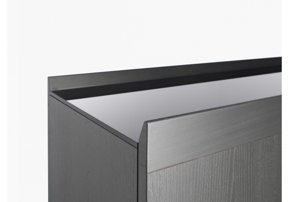 Avant conçue par Gabriele et Oscar Buratti pour Potocco est une armoire avec structure en frêne et pieds en laiton bruni. Plateau supérieur en marbre, verre rétro-laqué noir ou frêne. À l'intérieur, il y a 2 étagères en verre trempé noir et, sur demande, des tiroirs en option.