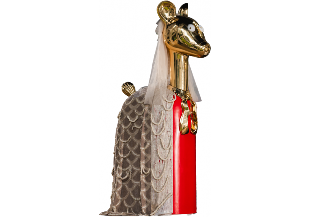 Lady Luna conçue par Matteo Cibic pour Scarlet Splendor est une meuble de rangement en contreplaqué, laiton et résine.