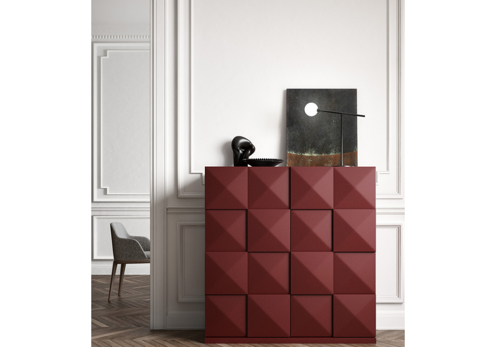 Quadro conçu par Alessio Bassan pour Capodopera est un meuble de rangement avec structure en MDF laqué brillant ou avec panneaux en bois plaqué. La version suspendue est disponible sur demande.