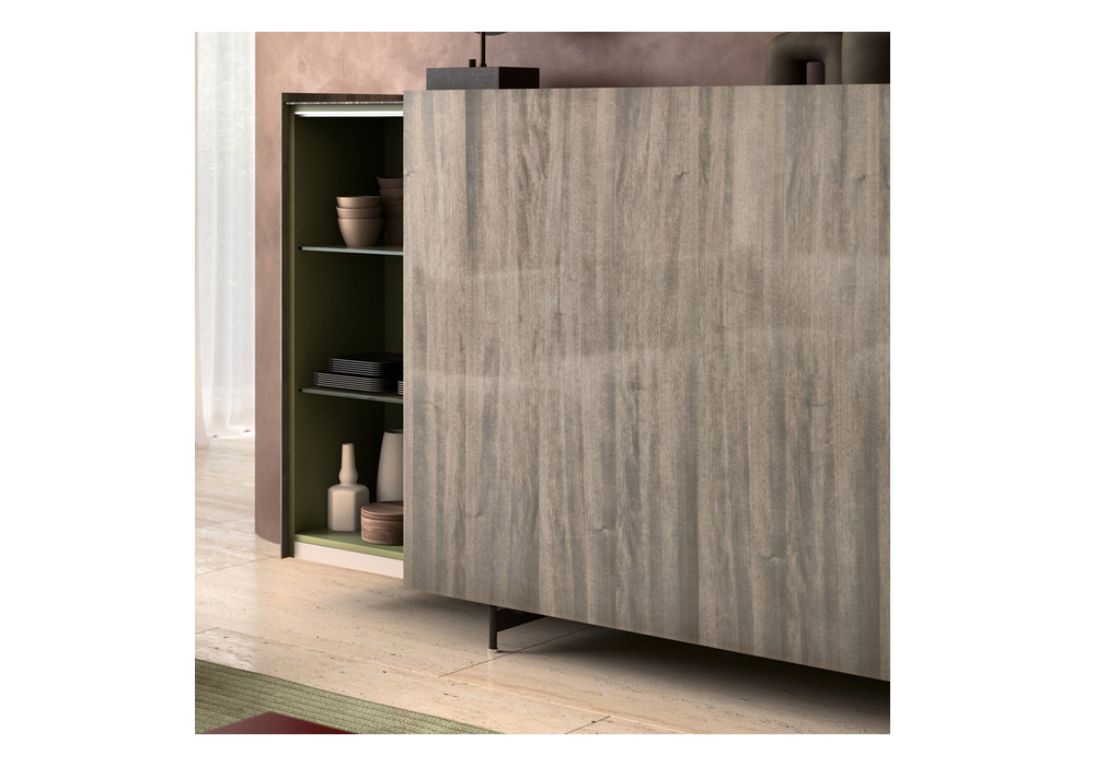 Atelier conçu par Alessio Bassan pour Capodopera est un meuble de rangement avec structure en MDF laqué brillant ou mat ou avec panneaux en bois plaqué. Le plateau peut être réalisé en grès, en bois plaqué ou en finition laquée brillante.