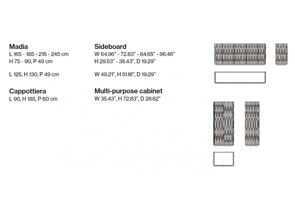 Siviglia conçu par Calvi Brambilla pour Pianca est un buffet composé de structure, socle, portes, profil, plateau laqué mat. Laqué mat ou bandes de bois et revêtement supplémentaire pour plateaux en cuir synthétique. Disponible en différentes finitions et dimensions.