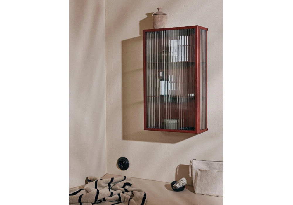 Haze conçu par Ferm Living est un meuble de rangement avec porte en verre roseau et structure en fer thermolaqué, disponible en différentes finitions. Une armoire murale pratique pour ranger de petits objets, parfaitement adaptée pour ranger des verres dans la cuisine ou des produits de beauté dans la salle de bain. Il fonctionne également bien dans un couloir rempli d'objets du quotidien tels que des clés et des lunettes de soleil.