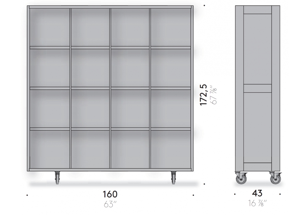 Shigeto Box, conçu par Vico Magistretti pour DePadova, est un conteneur ouvert avec structure et étagères en chêne fumé massif, finition peinture transparente à base d'eau ou de solvant, et panneaux de particules, plaqués en chêne fumé, finition peinture transparente à base d'eau ou de solvant. Les panneaux de séparation sont en panneau multiplis de bouleau plaqué en chêne fumé, finition peinture transparente à base d'eau ou de solvant. Les roues sont pivotantes avec support en acier chromé et roue avec anneau en caoutchouc antistatique avec système de blocage.