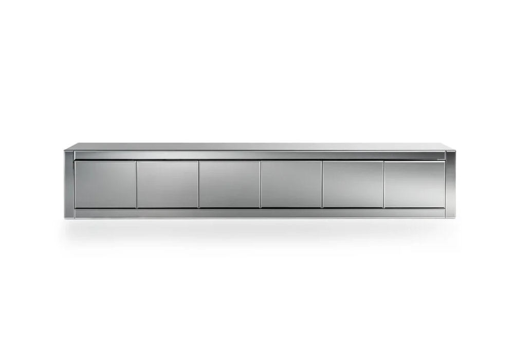 Avantgarde Low conçu par Reflex Angelo est un buffet en bois laqué brillant recouvert de verre biseauté laqué ou de verre fumé miroir. Portes avec ouverture push-pull.