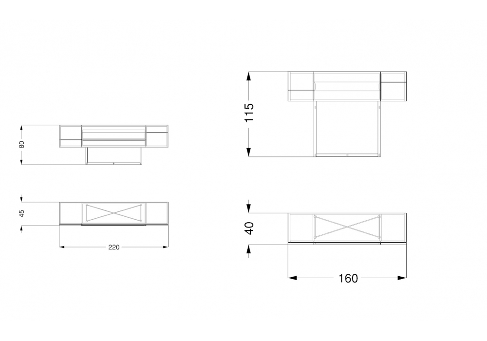 | Dimensions | 220 x 45 x H 80 cm; 160 x 40 x H 115 cm. |