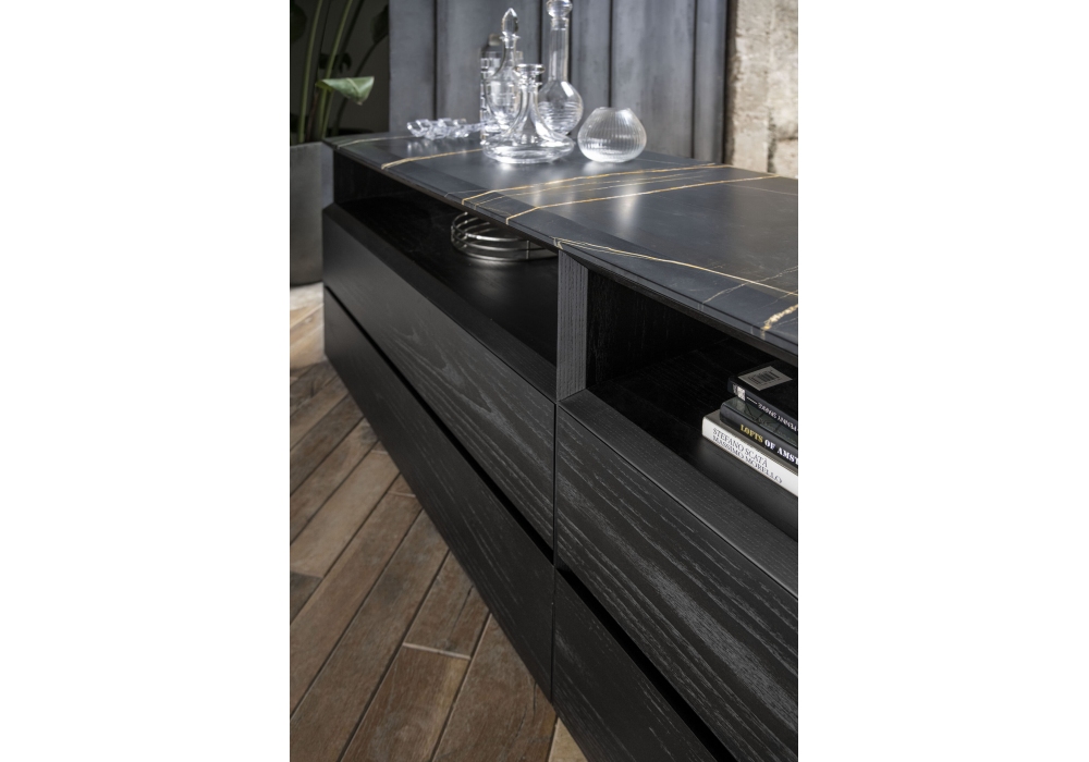 Manhattan conçu par Joe Garzone pour Conte Casa est un buffet réalisé avec une structure en essence de bois, laquée mate ou métallisée et un plateau en marbre ou dans la même finition que la structure. Disponible en différentes finitions et dimensions.