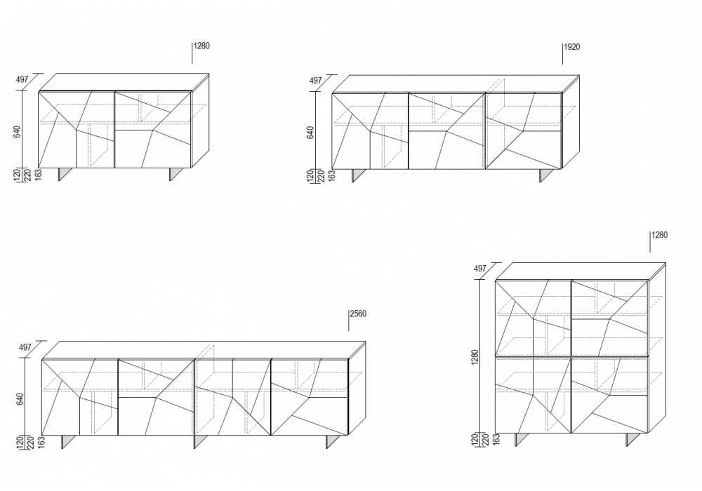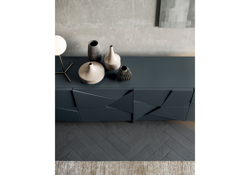 Concrete conçu par Dall'Agnese est un buffet réalisé en panneaux de particules. L'extérieur est disponible en laqué mat ou en finitions up, tandis que l'intérieur est en havane texturé, avec possibilité de finition laquée mate sur demande. Structure extérieure et compartiment intérieur en bois. Les façades ont des portes pantographiées et à facettes, avec ouverture uniquement push and pull. Disponible avec base Lama et Tube ou avec pieds.