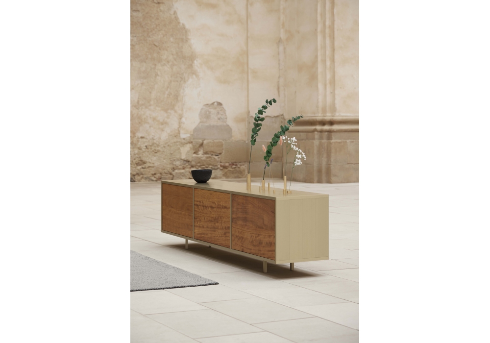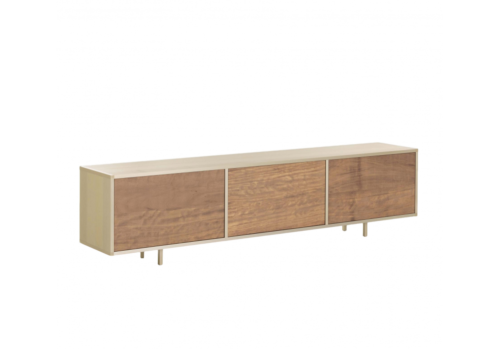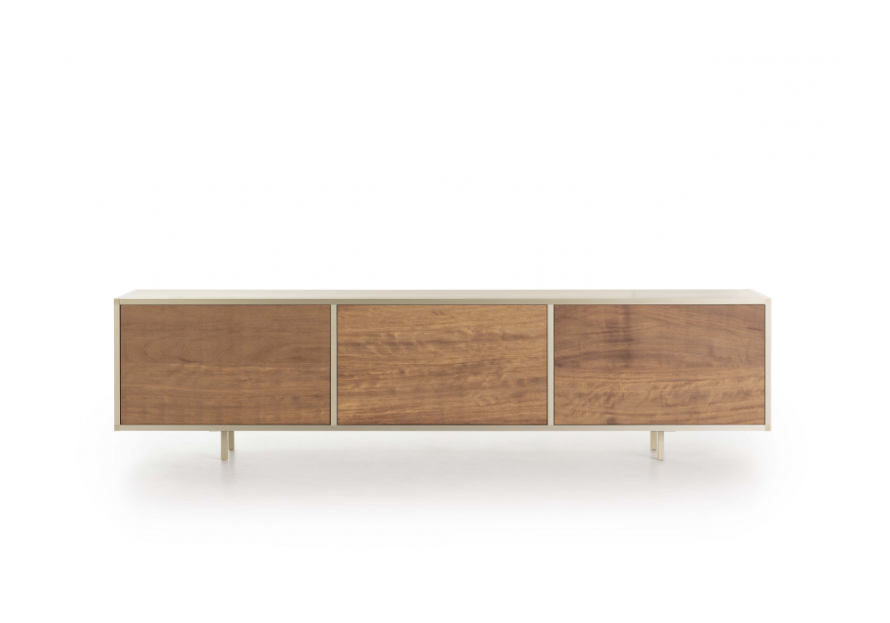 GBmodular conçu par José A. Gandía-Blasco Canales pour Gandia Blasco est un buffet en aluminium anodisé gravé, finition lisse ou nervurée. Les portes sont en bois d'iroko ou en verre trempé. Disponible en plusieurs finitions.