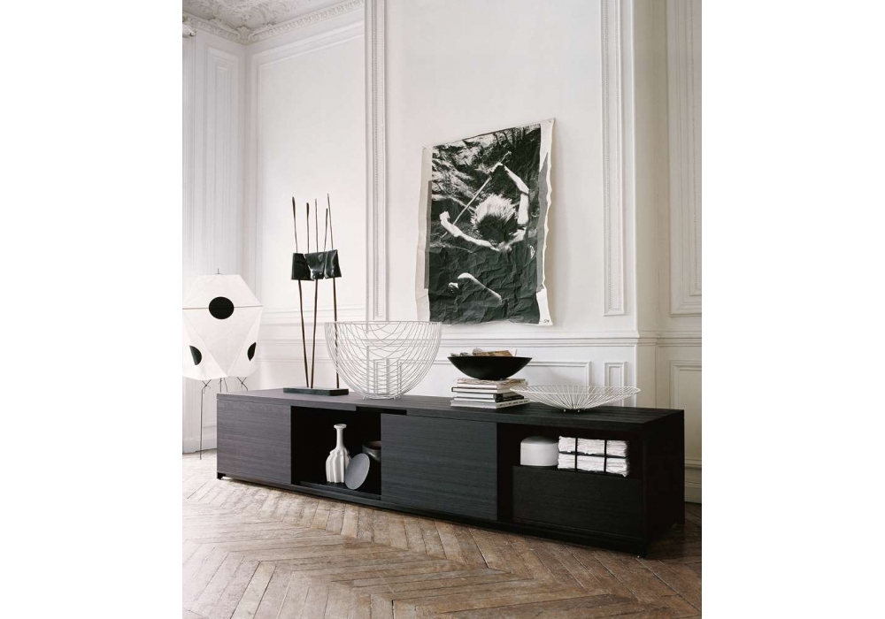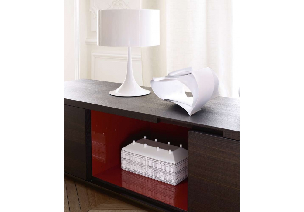 Mida conçu par Antonio Citterio pour Maxalto est un buffet à deux portes battantes et tiroirs. Base en acier chromé brillant, peint nickel bronzé, peint noir ou finition laiton. Structure en chêne gris, chêne clair brossé, chêne noir brossé ou wengé naturel. Structure interne peinte en rouge brique brillant ou dans le même bois que la structure. L'étagère coulissante est disponible dans la même couleur que le buffet. Les portes s'ouvrent à 180°.