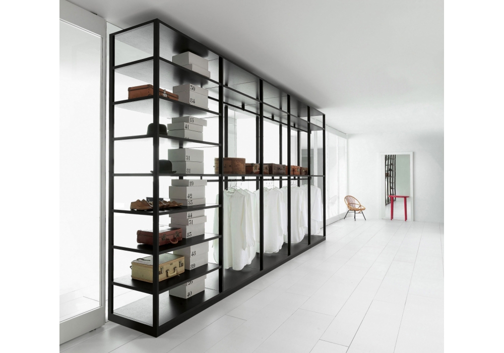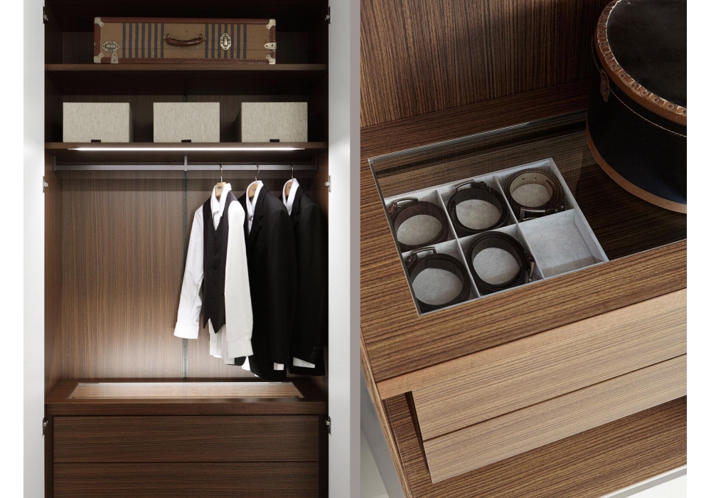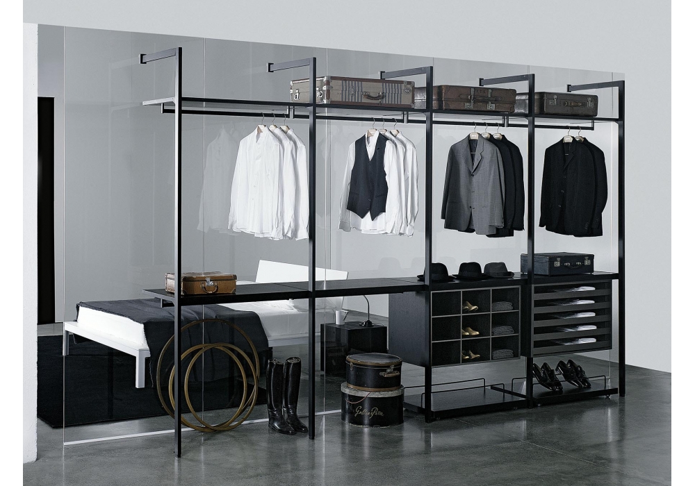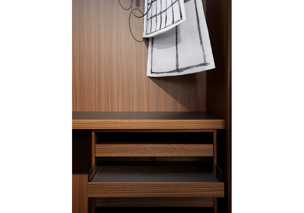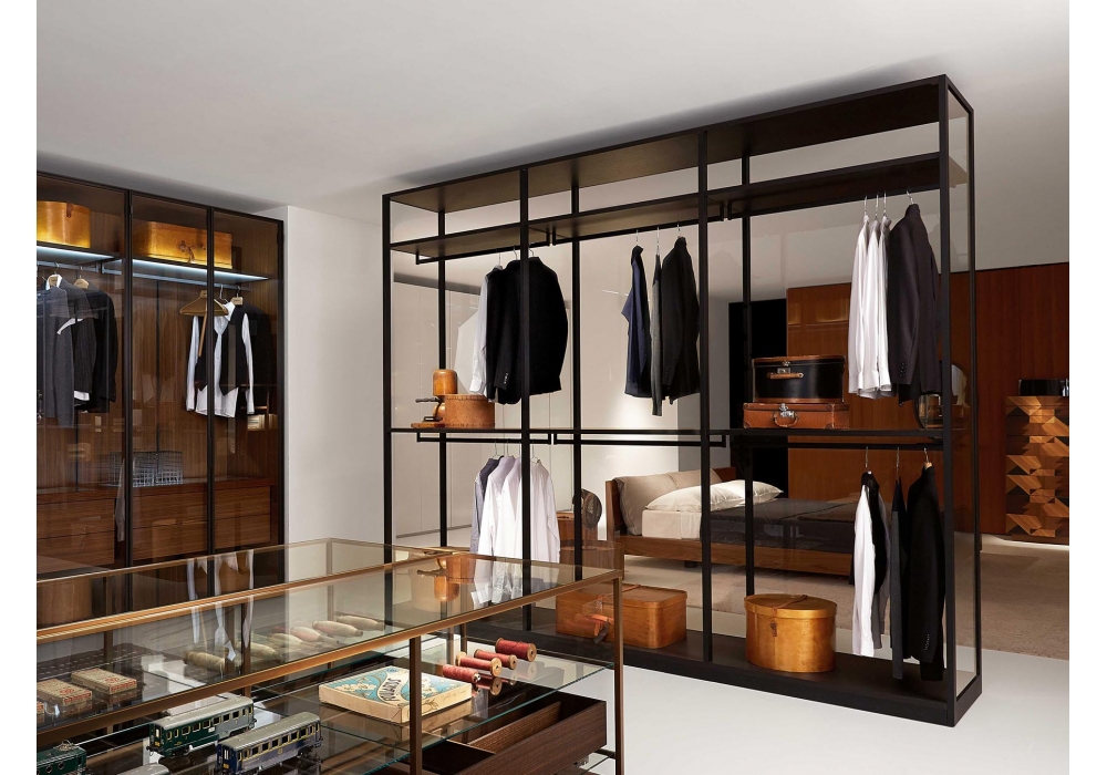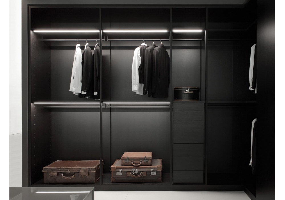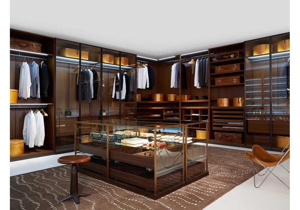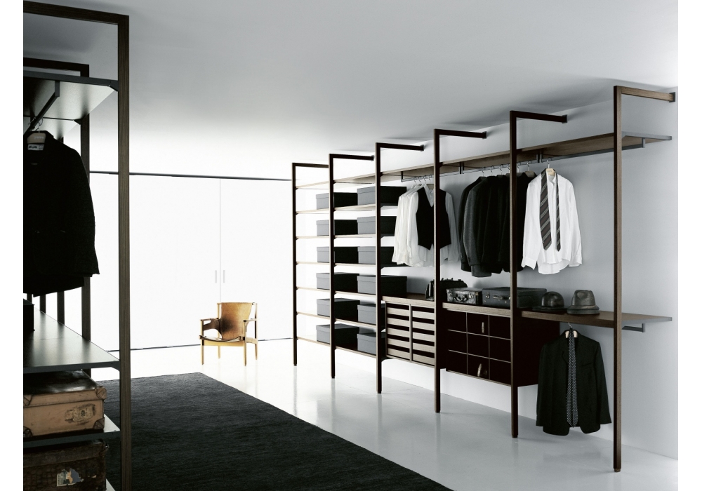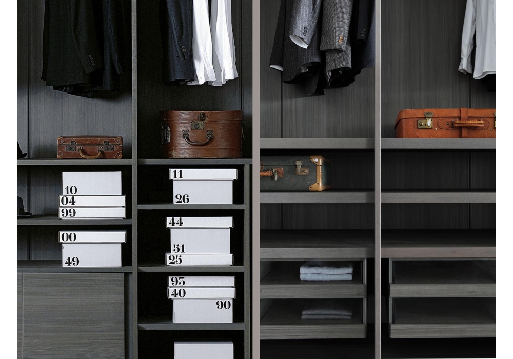 Storage conçu par Piero Lissoni + Centro Studi Porro pour Porro est un dressing modulaire en bois. Il est entièrement personnalisable avec éléments, tiroirs, porte-pantalons et nombreux autres accessoires.