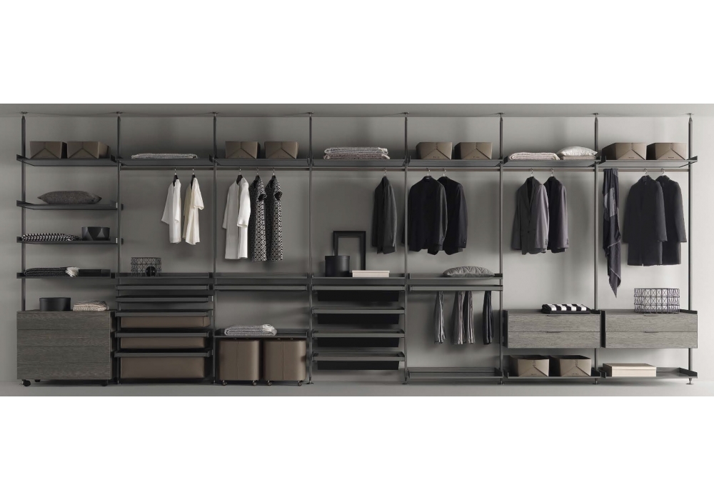 Zenit conçu par Giuseppe Bavuso pour Rimadesio est un dressing modulaire, qui représente une solution permettant une liberté d'agencement maximale des équipements, désormais à nouveau mise à jour sur le plan esthétique et fonctionnel.
