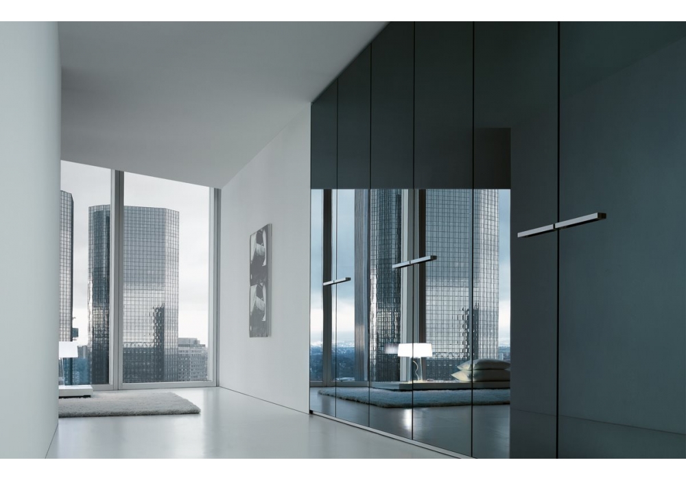Ocean conçu par R&D Poliform est une armoire avec portes en verre et profilés en aluminium. Disponible en différentes finitions et compositions.