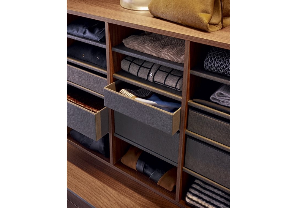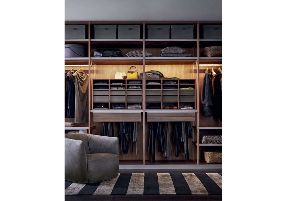 Senzafine conçu par R&D Poliform est une cabine armoire avec une personnalisation esthétique et fonctionnelle exceptionnelle.