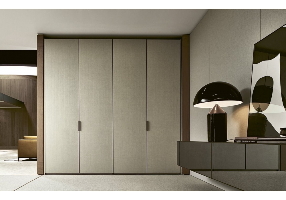 Canvas conçu par R&D Poliform est une armoire avec portes en mélamine Canvas. Elle est disponible en version battante, coulissante, coplanaire. Chant périmétral en abs.
