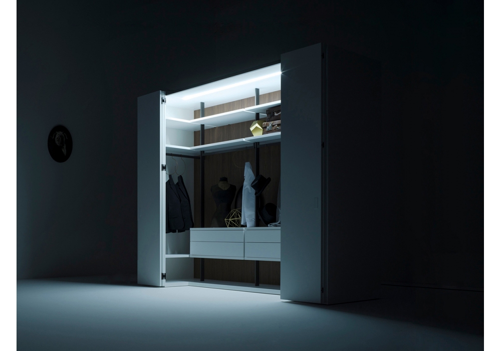 Camerino conçu par R&D Caccaro pour Caccaro est un dressing, les étagères, les cintres, les tiroirs peuvent être agencés en différentes solutions. Tous les modules peuvent être combinés et intégrés avec les autres éléments du système Freedhome® pour créer votre propre dressing personnalisé. Disponible en différentes finitions et dimensions.