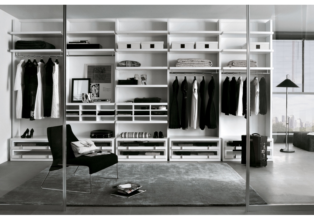 Millimetrica conçue par Ennio Arosio pour MisuraEmme est une cabine armoire. La modularité illimitée permet une personnalisation complète avec divers accessoires et compléments, tandis que les finitions et les matériaux choisis confèrent au support légèreté et raffinement. Les portes coulissantes en verre transparent réfléchissant élargissent l'espace dans lequel l'accessoire est placé, créant un environnement accueillant et spacieux avec des géométries qui peuvent être adaptées à l'espace architectural. Le dressing Millimetrica offre une large gamme de solutions pour satisfaire tous les besoins.