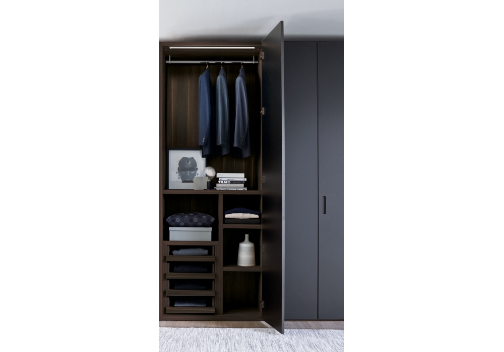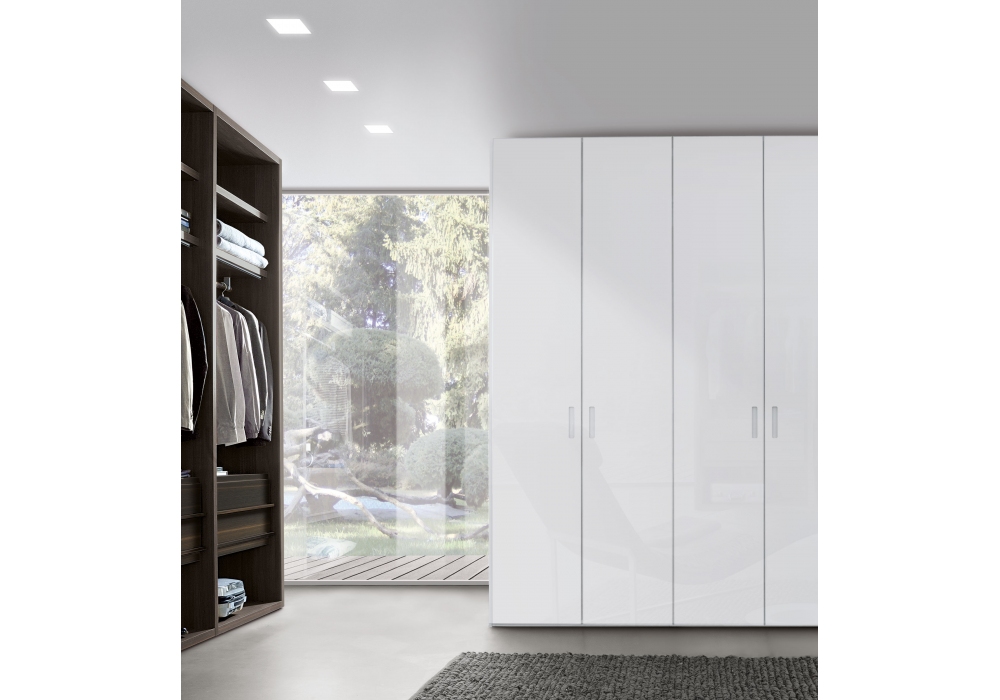 First conçu par MisuraEmme est une armoire qui reprend la transparence évocatrice du verre, le jeu de reflets des miroirs, les couleurs claires des armoires qui multiplient les espaces, les déclinant à l'infini.