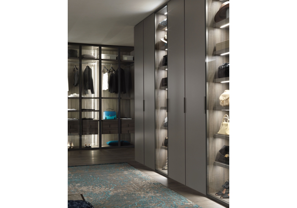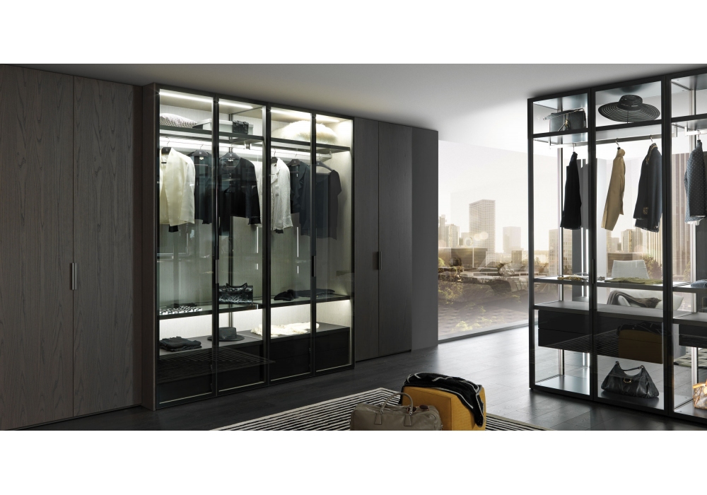 Narcisse conçue par Gianni Borgonovo pour MisuraEmme est une armoire avec structure en aluminium peint avec poignée appliquée au profil. Insert en verre trempé / miroir trempé. Verre avec cadre sérigraphié fixé à la porte avec de la colle bio-composant.