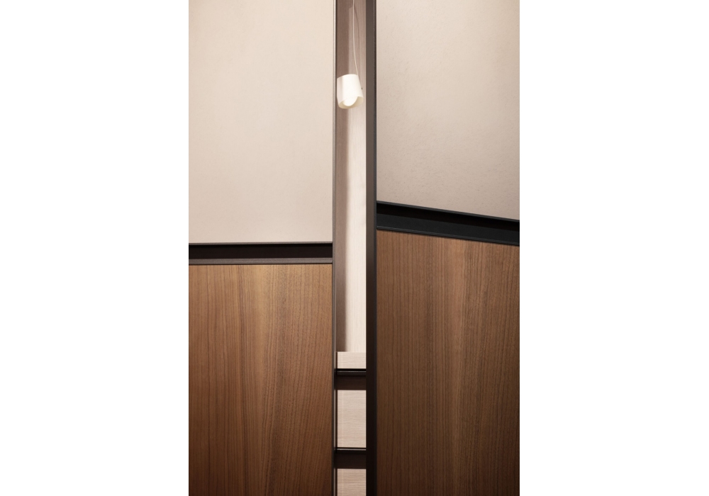 Lena conçu par Piero Lissoni pour Lema est un dressing avec un système modulaire hautement personnalisable, caractérisé par la diversité matérielle et chromatique de la porte.