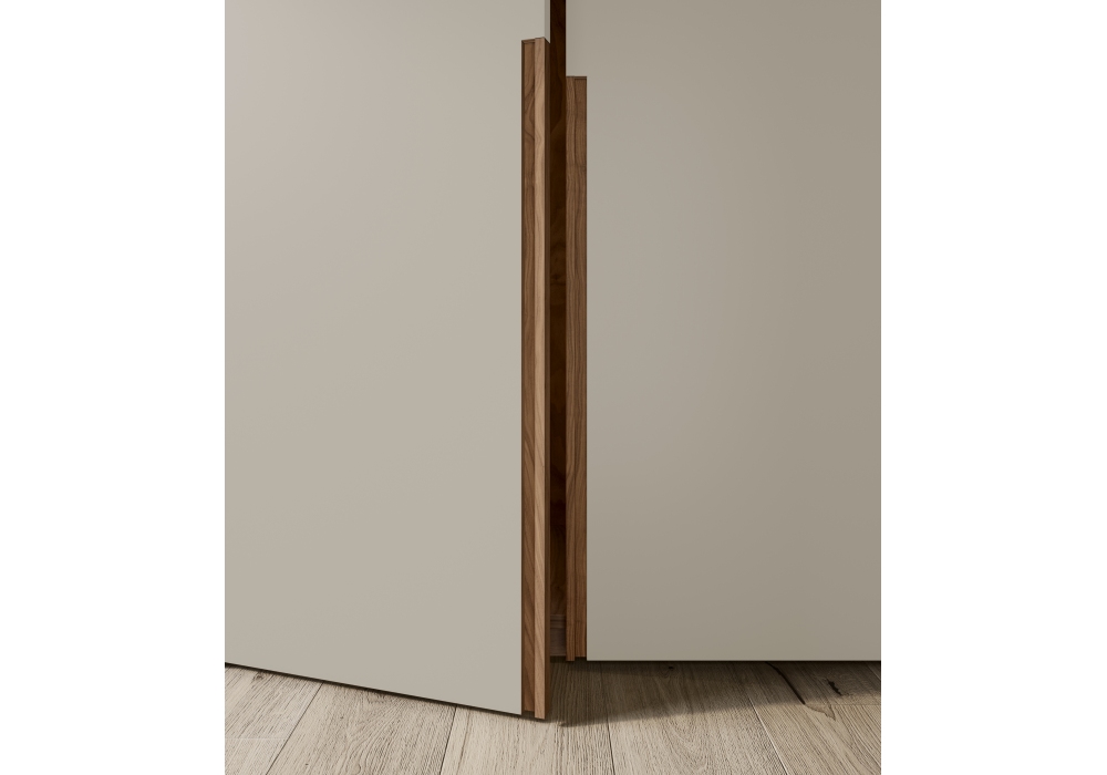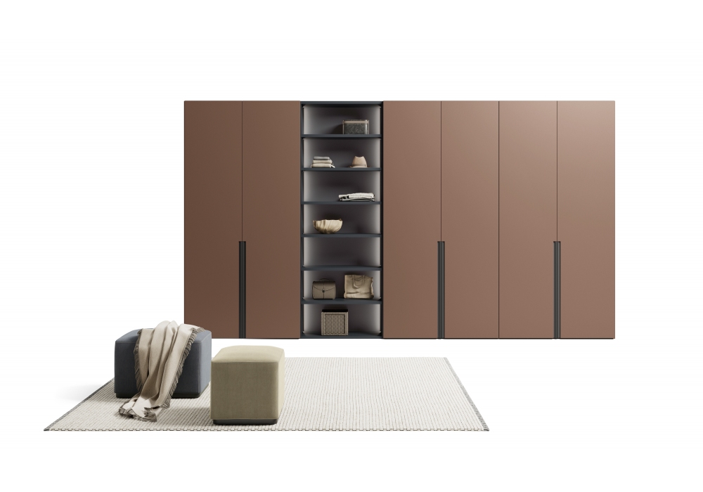 Green conçue par Dall'Agnese est une armoire à portes coulissantes réalisée en bois laqué ou perforé et particules de bois peintes. Ouverture par poignée en bois dans les finitions essence ou laquée opaque.