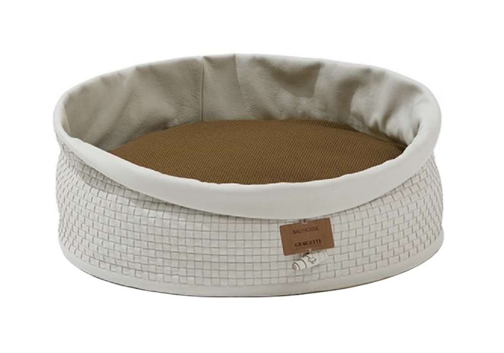 Bau'house conçu par Giancarlo Bosio & Centro Ricerche Giorgetti est un lit pour animaux en double couche de cuir entrelacé en différentes couleurs. Le coussin interne est en tissu lavable, disponible en plusieurs couleurs.