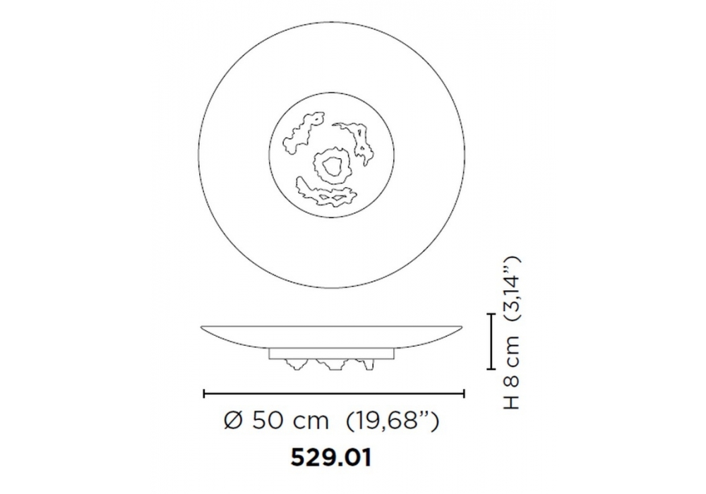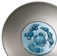 Piatto Di Tapio est une assiette dessinée par Tapio Wirkkala pour Venini est une assiette en verre soufflé, avec un centre épais fait main, réalisée avec la technique «incalmo». Edition numérotée pour l'année.