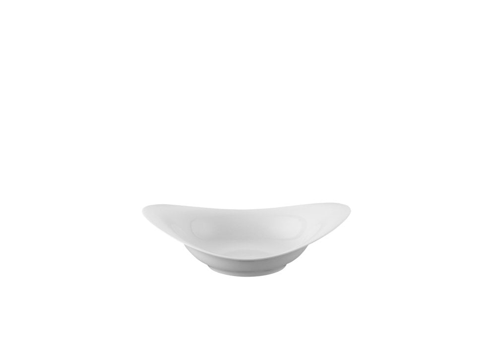 Scoop conçue par Cairn Young et Robin Platt pour Rosenthal est une assiette en porcelaine blanche, disponible en trois tailles.