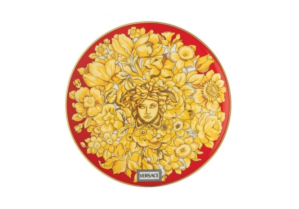 Medusa Rhapsody Red conçue par Versace en collaboration avec Rosenthal est une assiette plate en porcelaine.